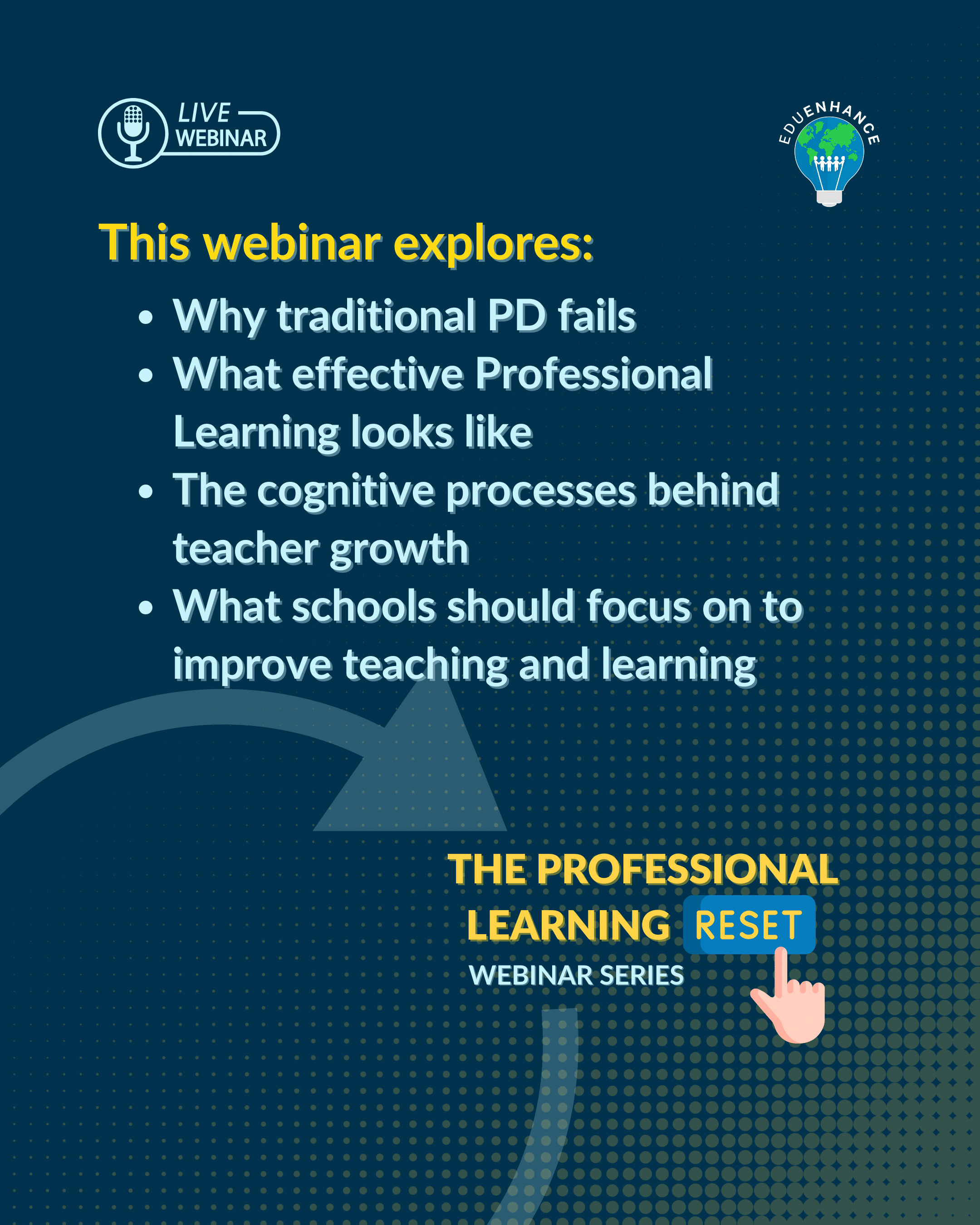 This opening webinar in The Professional Learning Reset series challenges long-standing assumptions about professional development and explores why traditional PD models so often fail to translate into improved teaching and learning. Rather than focusing on more training, the session reframes professional learning as a cognitive and behavioural process — one that requires coherence, practice, feedback, and sustained support.